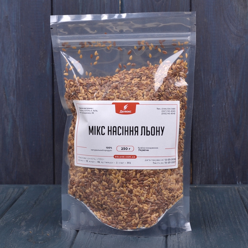 Смесь семян коричневого и золотого льна в удобной упаковке с застежкой для ежедневного использования.