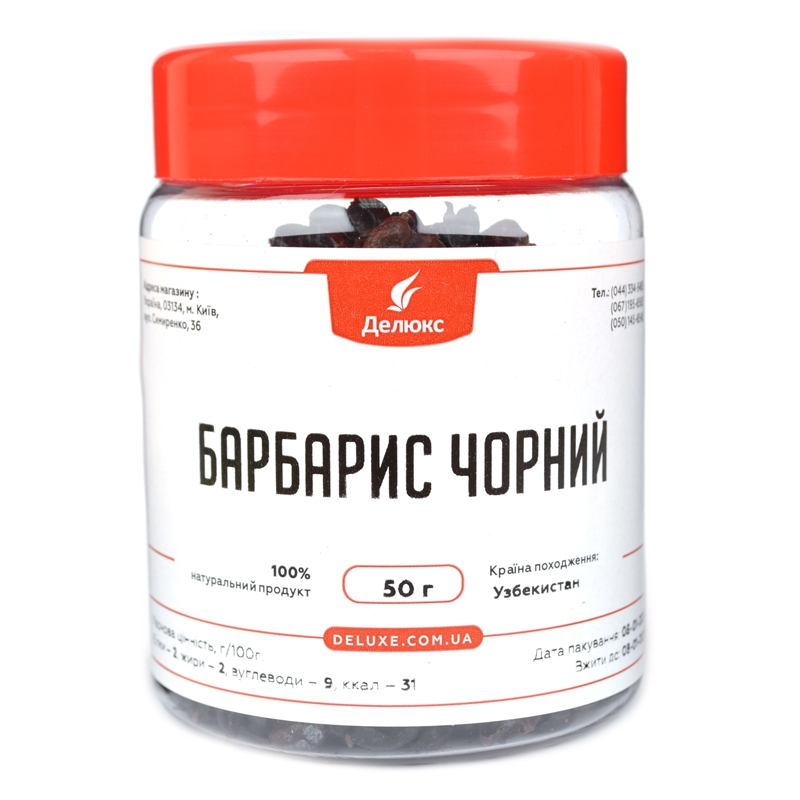 В интернет-магазине Делюкс можно купить черный барбарис в упаковках от 50 до 1000 г. В каталоге представлены фото, описания продукта. Ягоды чистые, отборные, без посторонних вкраплений, с характерным запахом.