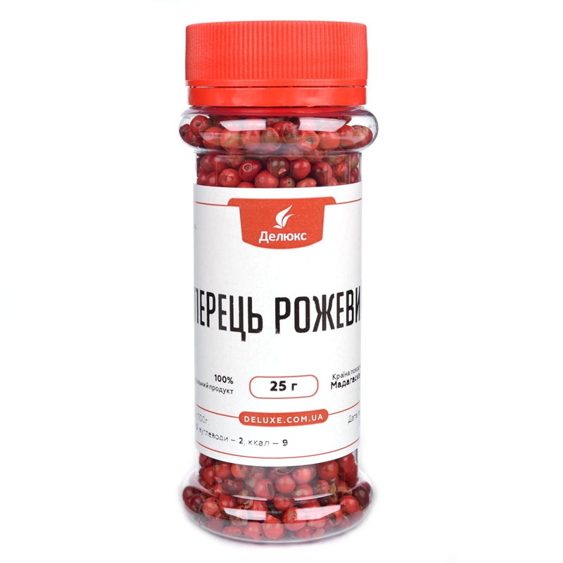 Блискучі, великі, яскравого кольору горошини якісного рожевого перцю можна придбати у нашому інтернет-магазині DeLuxe.com.ua. Тонка, пікантна та запашна рожева пряність перетворить будь-яку страву на свято.