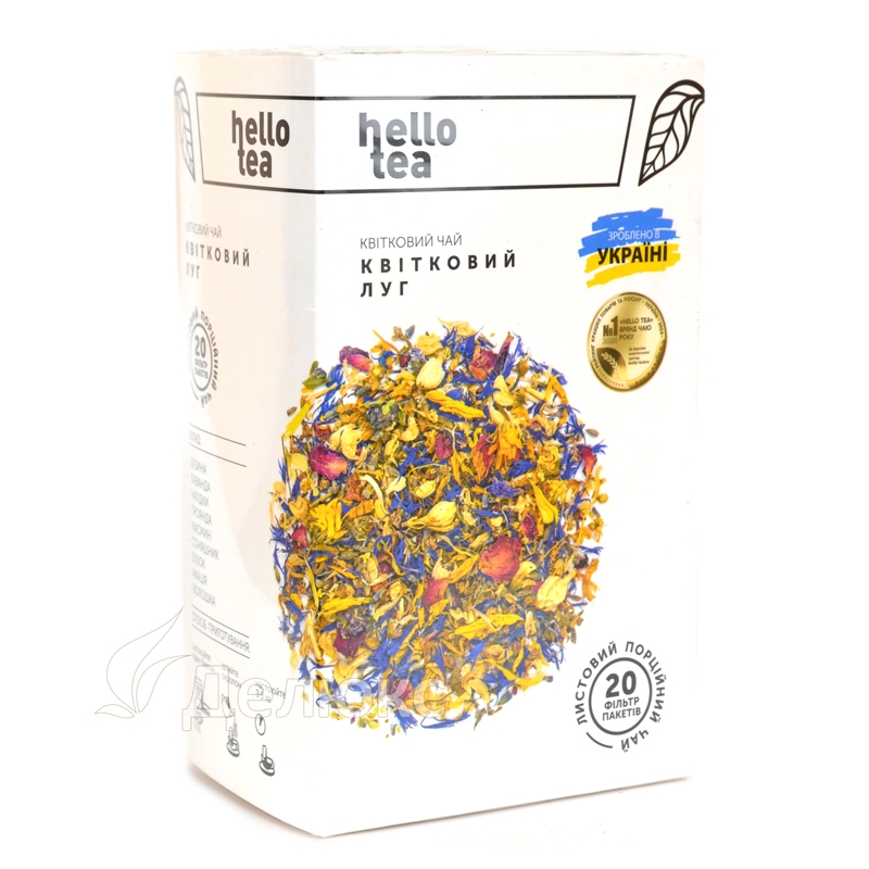 Трав'яний чай "Квітковий луг" від українського бренду Hello Tea У коробці 20 порційних фільтр-пакетів. Зручний формат для дому та офісу, особливо якщо брати із собою або пити на роботі.